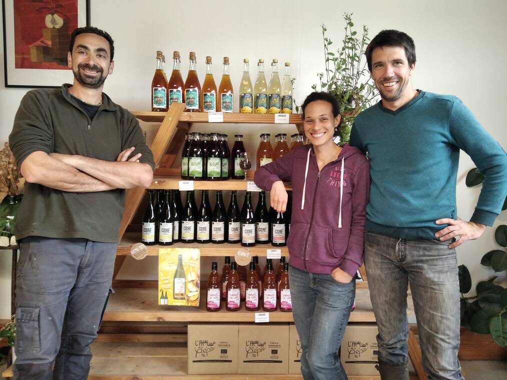 Nous fabriquons dans notre atelier à Pluherlin, du cidre, du jus de pomme, du vinaigre, du chouchen mais aussi une limonade « à l’ancienne », au pur jus de citron de Sicile et sucre de canne, ainsi que du bissap. Tous les produits sont élaborés en agriculture biologique. Les cidres sont pur jus, sans sulfites ni gaz carbonique ajouté.