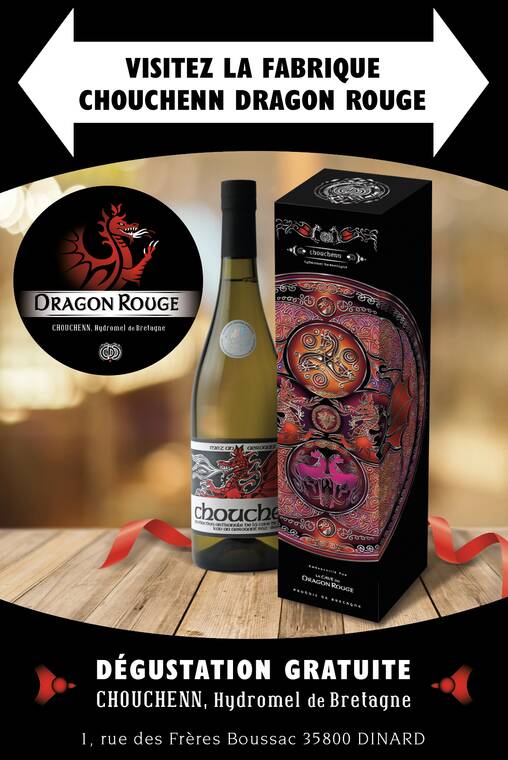 Le Dragon Rouge produit des Chouchenn haut de gamme, élaborés en fût de bois de chêne. La particularité du Dragon Rouge est d’affiner les chouchenn produits, de travailler avec le temps, de réaliser des assemblages, comme avec des vins. Les 6 chouchenn de La Cave Dragon Rouge sont tous très dissemblables car de leur naissance à la mise en bouteille leur élevage a été différent. De ce travail, le Dragon Rouge a été honoré à plusieurs reprises au Concours Agricole de Paris (France), au Concours International de l'hydromel à Wroclaw (Pologne) et au Challenge des meilleurs vins et apéritifs français à Miami (USA). La plus belle récompense reste l'engouement de ses clients et la reconnaissance de plusieurs chefs étoilés tels que Thierry MARX et Anne Sophie PIC jusqu'à être présenté sur la table du Restaurant Paul BOCUSE. Vous retrouverez notre production chez votre caviste préféré ou lors d'une visite-dégustation directement au Chai du Dragon Rouge à Dinard.