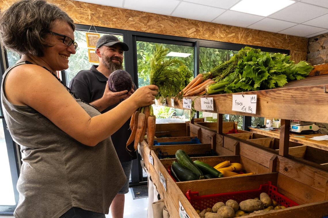 Ils cultivent une très grande diversité de légumes et fruits bio en utilisant les techniques de maraîchage sol vivant et d’agroforesterie.